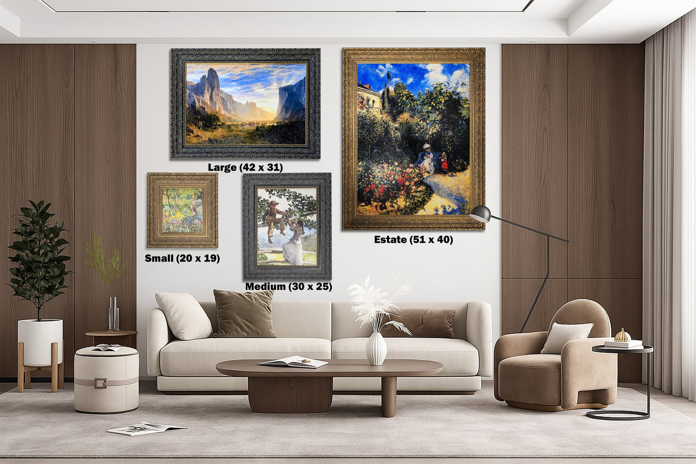 Museum quality framed canvas reproductions, Made in America, with hand embellished brush strokes.