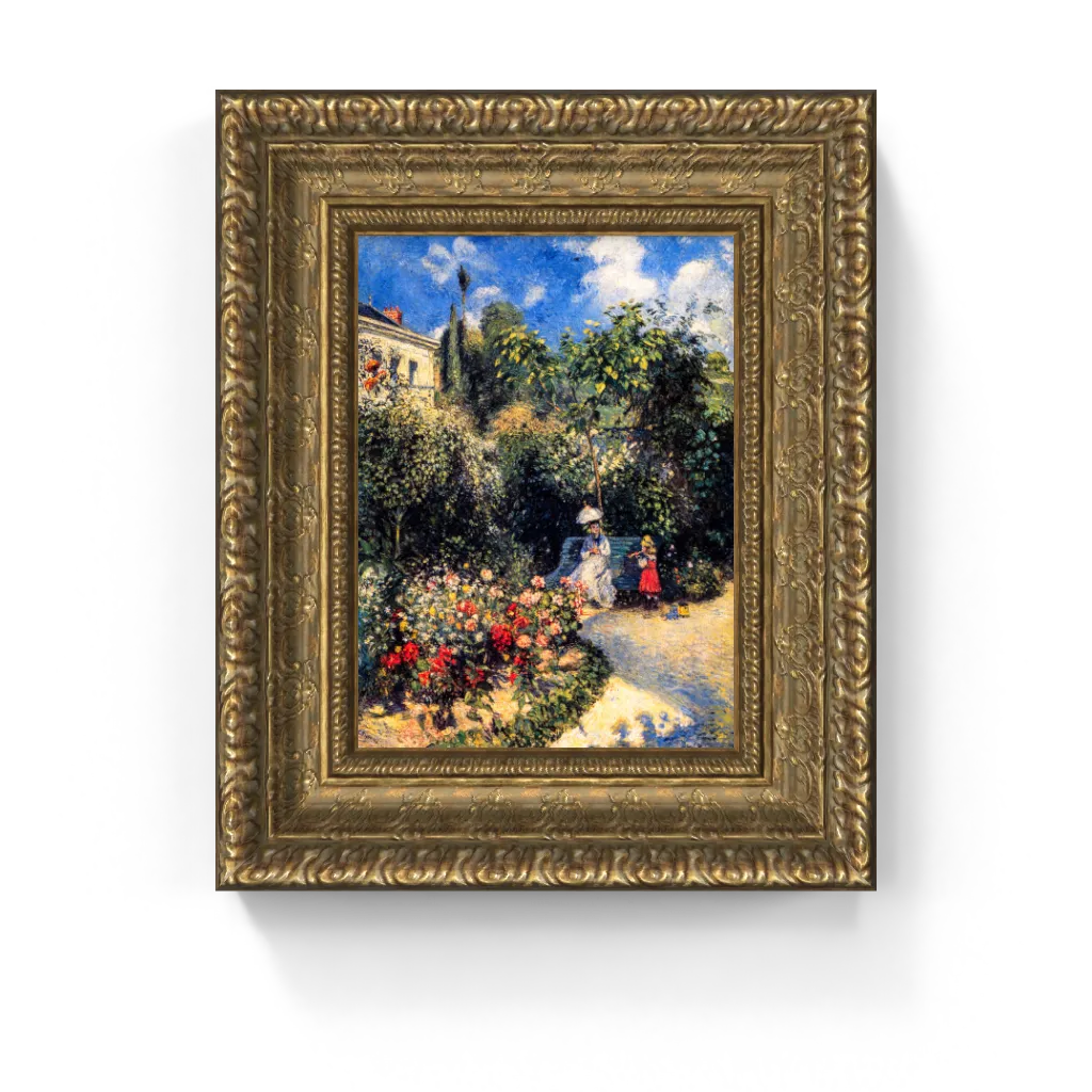 This exquisite framed canvas reproduction of Camille Pissarro’s The Garden in Pontoise has undergone meticulous digital restoration, unlocking a depth of color and detail often muted in typical online versions. The process has yielded unparalleled vibrancy in the lush greens and the dazzling floral hues, making the sun-drenched garden feel truly alive. Furthermore, the restoration delivers superior clarity in every element, from the intricate petals of the flowers to the delicate play of light on the figures, allowing Pissarro’s masterful Impressionist brushwork to resonate with breathtaking fidelity.