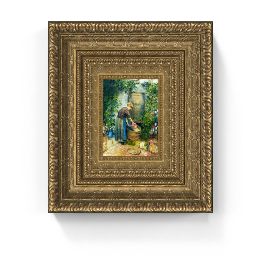 This exquisite framed canvas reproduction of Camille Pissarro’s Woman Washing a Pan has been meticulously digitally restored, enhancing its clarity and vibrancy far beyond typical reproductions. The subtle textures and gentle tonal harmonies, crucial to Pissarro's empathetic portrayal, are now presented with renewed fidelity, offering a viewing experience closer to the original masterwork.