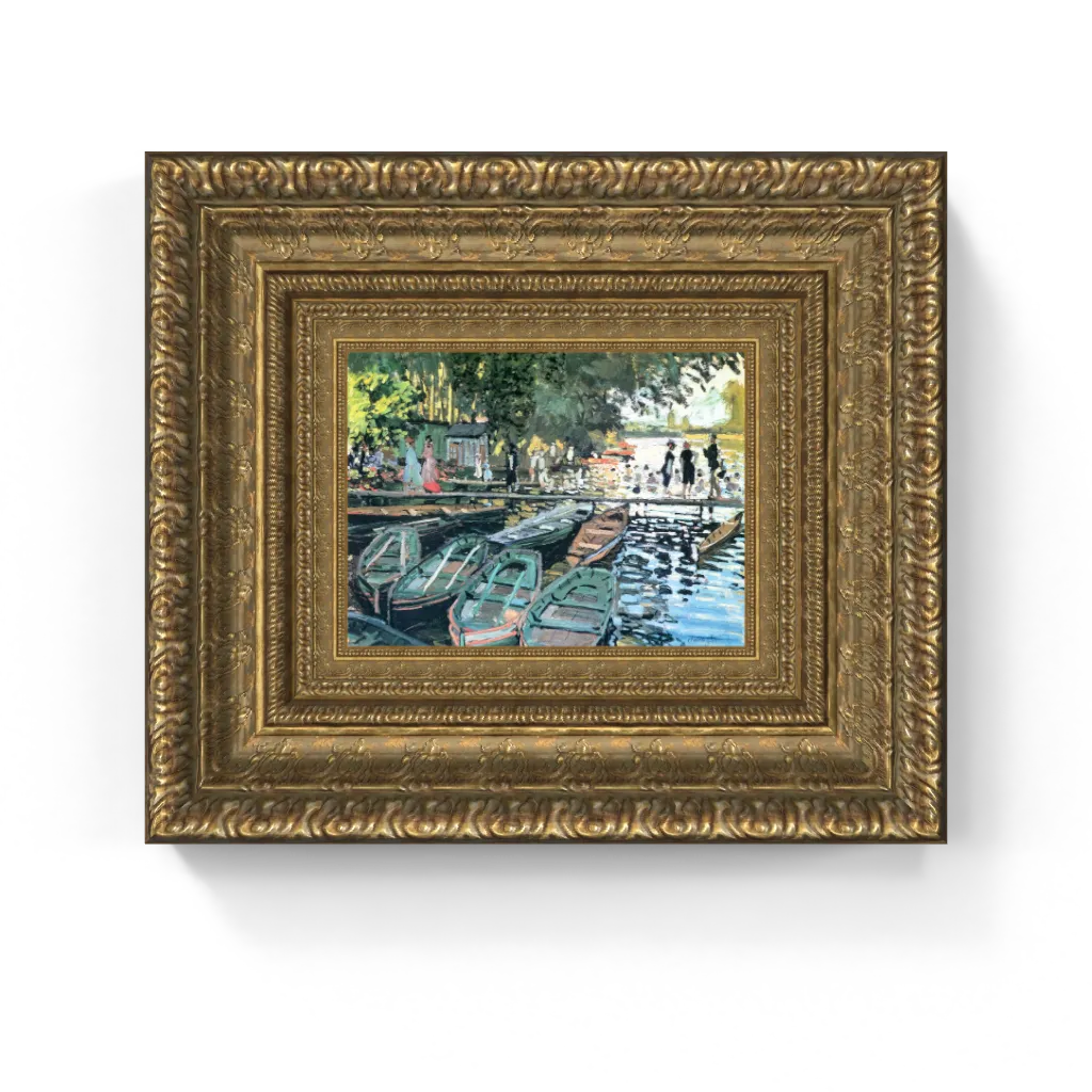 This iconic framed canvas reproduction of Claude Monet’s Bathers at La Grenouillère has undergone meticulous digital restoration, unlocking an astonishing clarity and vibrant fidelity that is truly unparalleled. The process has revived the luminous glow of the sunlight on the water and the exquisite textures of the foliage and figures with precision, ensuring every delicate nuance of light and lively movement is perfectly rendered. This meticulous attention ensures this masterpiece comes to life on canvas with breathtaking authenticity, offering a truly stunning physical experience that preserves the painting's original, revolutionary brilliance and captivating energy.
