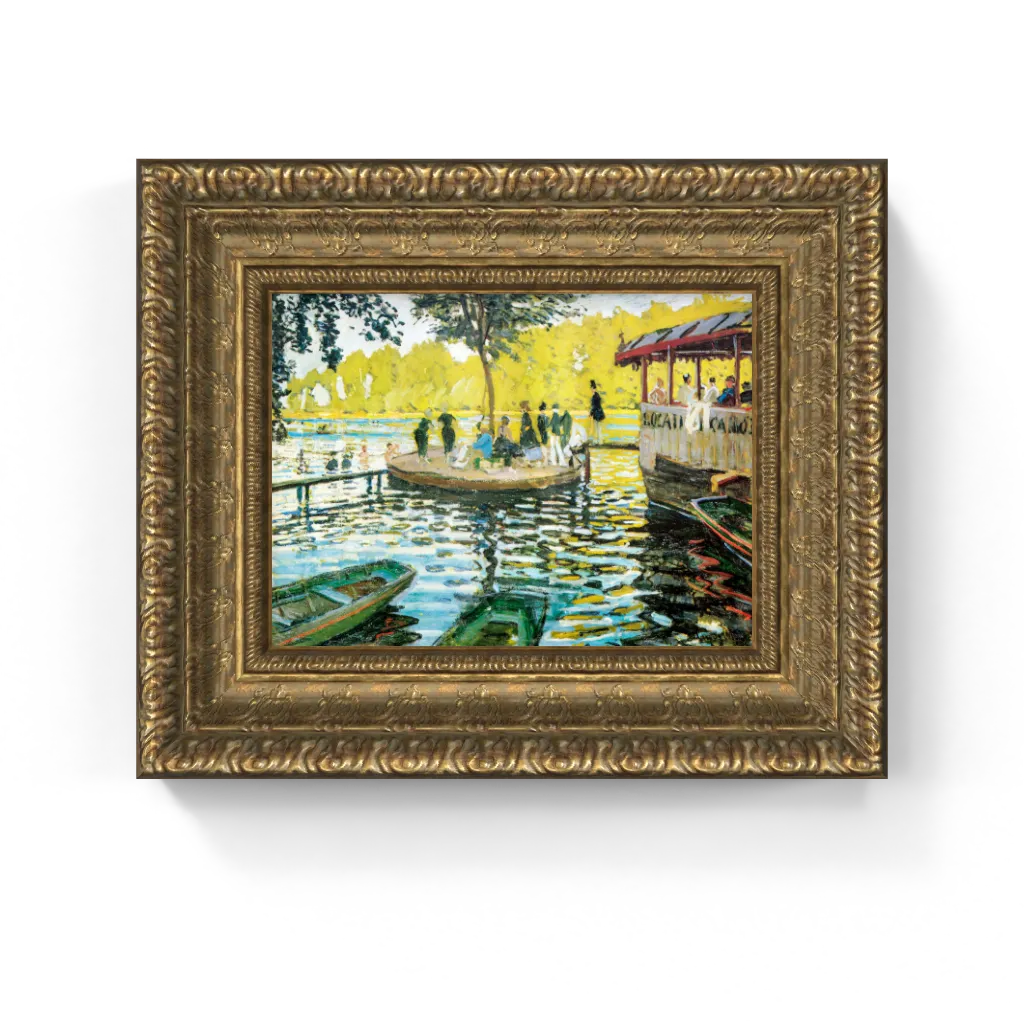 This iconic framed canvas reproduction of Claude Monet’s La Grenouillère has undergone meticulous digital restoration, unlocking an astonishing clarity and vibrant fidelity that is truly unparalleled. The process has revived the incandescent brilliance of the sunlit water and the exquisite shimmer of its reflections with precision, ensuring every delicate nuance of light and motion is perfectly rendered. This meticulous attention ensures this masterpiece comes to life on canvas with breathtaking authenticity, offering a truly stunning physical experience that preserves the painting's original, revolutionary brilliance and captivating energy.