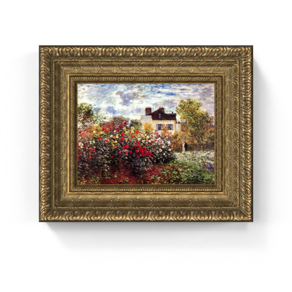 This captivating framed canvas reproduction of Claude Monet’s Monet's Garden at Argenteuil has undergone meticulous digital restoration, unlocking an astonishing clarity and vibrant fidelity that is truly unparalleled. The process has revived the incandescent brilliance of the blooming flowerbeds and the lush richness of the foliage with exquisite precision, ensuring every delicate petal and shimmering leaf is perfectly rendered. This meticulous attention ensures this masterpiece comes to life on canvas with breathtaking authenticity, offering a truly stunning physical experience that preserves the painting's original, dazzling splendor and captivating atmosphere.
