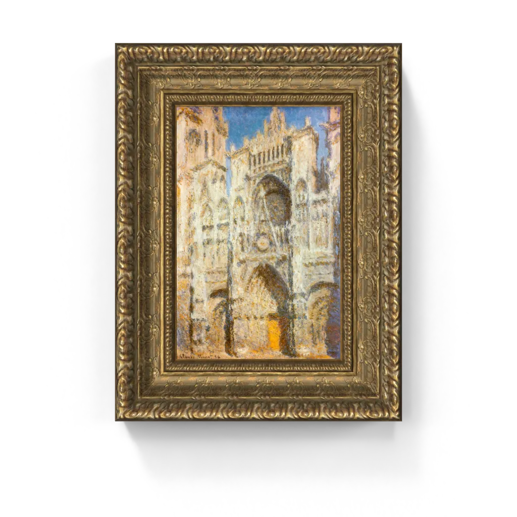 This iconic framed canvas reproduction of Claude Monet’s Rouen Cathedral, Sunlight has undergone meticulous digital restoration, unlocking an astonishing clarity and vibrant fidelity that is truly unparalleled. The process has revived the incandescent brilliance of the sun on the ancient stone and the exquisite texture of Monet's famed impasto brushwork with precision, ensuring every delicate nuance of light and form is perfectly rendered. This meticulous attention ensures this masterpiece comes to life on canvas with breathtaking authenticity, offering a truly stunning physical experience that preserves the painting's original, dazzling luminosity and profound atmospheric depth.