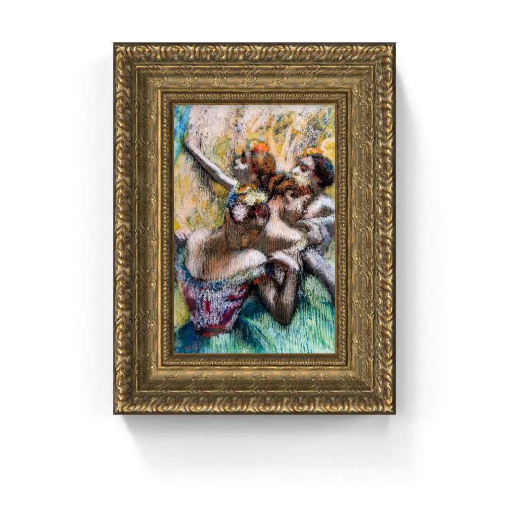 This captivating framed canvas reproduction of Edgar Degas’s Four Dancers has undergone meticulous digital restoration, unlocking an astonishing clarity and vibrant fidelity that is truly unparalleled. The process has revived the exquisite textures of the pastel medium and the luminous shimmer of the dancers' tutus with precision, ensuring every bold stroke and kinetic form is perfectly rendered. This meticulous attention ensures this masterpiece comes to life on canvas with breathtaking authenticity, offering a truly stunning physical experience that preserves the drawing's original, compelling splendor and profound dynamism.