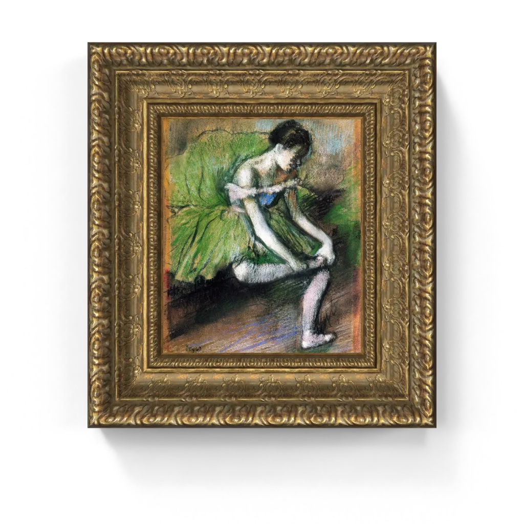 This captivating framed canvas reproduction of Edgar Degas’s The Green Dress has undergone meticulous digital restoration, unlocking an astonishing clarity and vibrant fidelity that is truly unparalleled. The process has revived the exquisite textures of the pastel medium and the luminous shimmer of the dancer's tutu with precision, ensuring every bold stroke and kinetic form is perfectly rendered. This meticulous attention ensures this masterpiece comes to life on canvas with breathtaking authenticity, offering a truly stunning physical experience that preserves the drawing's original, compelling splendor and profound dynamism.