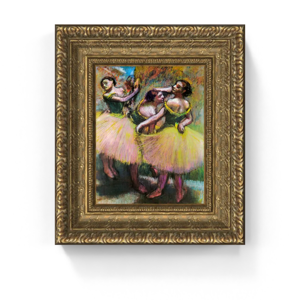 This captivating framed canvas reproduction of Edgar Degas’s The Three Dancers has undergone meticulous digital restoration, unlocking an astonishing clarity and vibrant fidelity that is truly unparalleled. The process has revived the exquisite textures of the pastel medium and the luminous shimmer of the dancers' tutus with precision, ensuring every bold stroke and kinetic form is perfectly rendered. This meticulous attention ensures this masterpiece comes to life on canvas with breathtaking authenticity, offering a truly stunning physical experience that preserves the drawing's original, compelling splendor and profound dynamism.