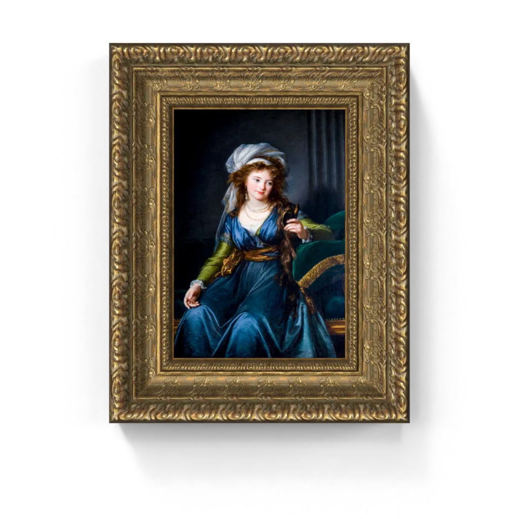 This captivating framed canvas reproduction of Elisabeth Louise Vigée Le Brun’s Countess Ekaterina Skavronskaya has undergone meticulous digital restoration, unlocking an astonishing clarity and vibrant fidelity that is truly unparalleled. The process has revived the luminous glow of her complexion and the exquisite richness of her silken gown and velvet chair with precision, ensuring every delicate pearl and intricate detail is perfectly rendered. This meticulous attention ensures this masterpiece comes to life on canvas with breathtaking authenticity, offering a truly stunning physical experience that preserves the painting's original, elegant beauty and profound charm.