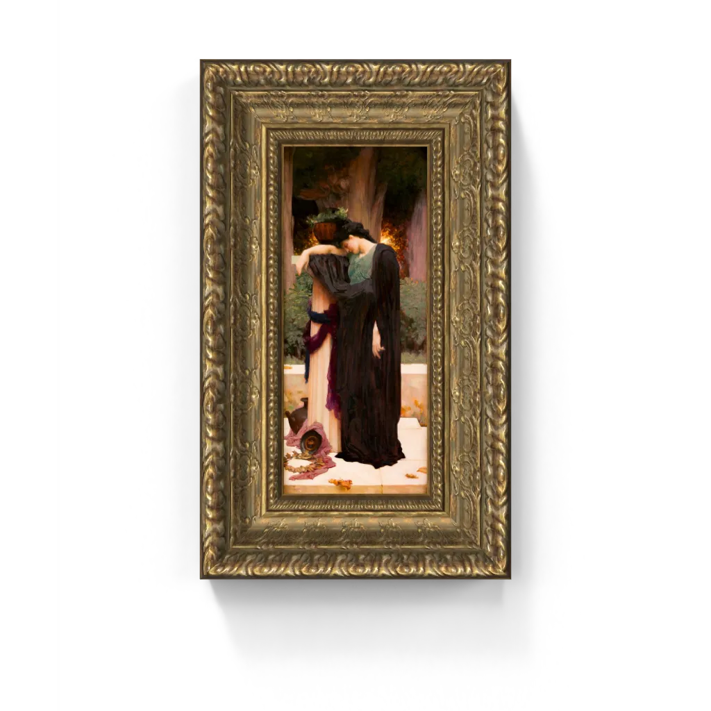 This emotionally resonant framed canvas reproduction of Frederic Leighton’s Lachrymae has undergone meticulous digital restoration, yielding a truly astonishing transformation. Where other available versions often appear veiled in shadow or lose their subtle nuances, this restoration strikingly illuminates the painting's profound depth and luminous detail, revealing a richness of color and texture that is genuinely unparalleled. The process has revived the delicate sheen of the dark drapery, the somber glow from the background, and the exquisite rendering of the figure, ensuring this masterpiece comes to life on canvas with breathtaking authenticity, offering a truly stunning physical experience that captures every poignant element of Leighton's original vision.