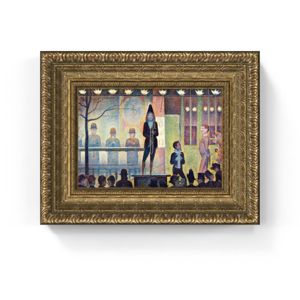 This captivating framed canvas reproduction of Georges Seurat’s Circus Sideshow has undergone meticulous digital restoration, unlocking an astonishing clarity and vibrant fidelity that is truly unparalleled. The process has revived the subtle luminosity of the gaslight and the exquisite definition of every individual Pointillist dot with precision, ensuring the painting's intended visual vibration and atmospheric depth are perfectly realized. This meticulous attention ensures this masterpiece comes to life on canvas with breathtaking authenticity, offering a truly stunning physical experience that preserves the original, compelling brilliance and intricate texture of Seurat's groundbreaking work.