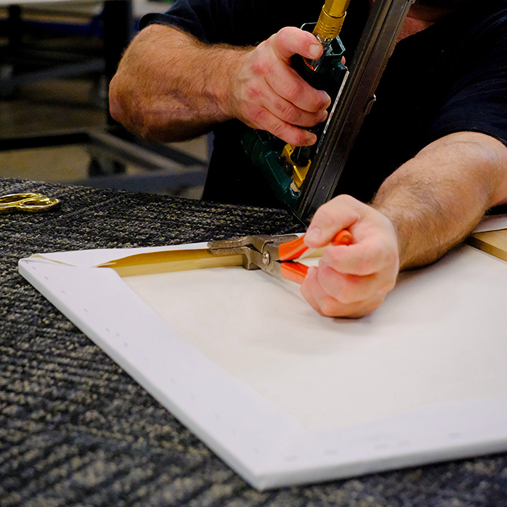 Our canvases are stretched by hand for an authentic touch of Old World craftsmanship.