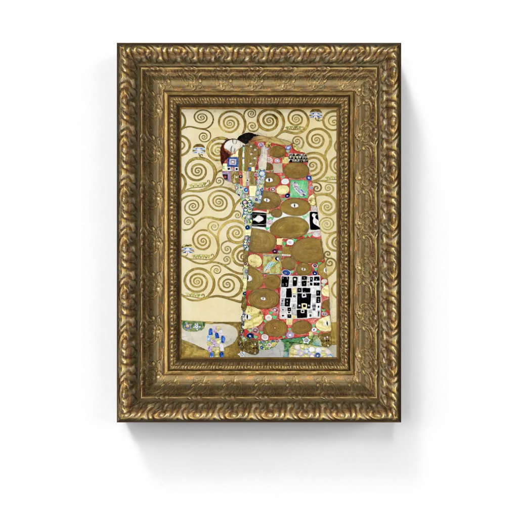 Embrace the golden harmony of Gustav Klimt’s Fulfillment, a masterwork that epitomizes his iconic blend of sensuality, symbolism, and ornamental splendor. Originally part of the celebrated Stoclet Frieze—a mosaic commission for the Palais Stoclet in Brussels—Fulfillment is a transcendent expression of love realized, of desire reaching its graceful resolution.