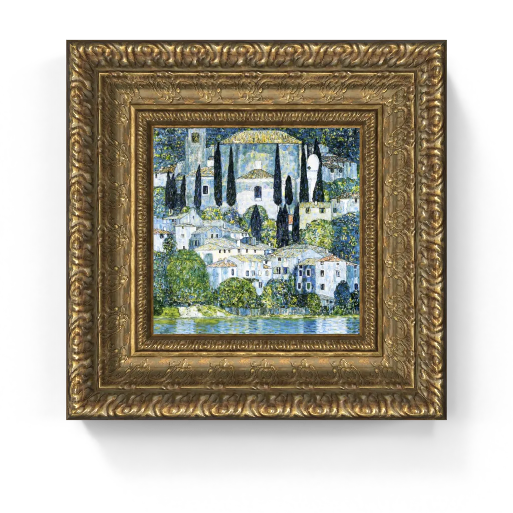 This museum-quality framed canvas reproduction captures the balance of color, geometry, and lyrical stillness that defines Kirche in Cassone. Perfect for collectors who admire Klimt’s lesser-known landscapes, European village scenes, or richly decorative art, this piece offers a moment of peaceful elevation—rooted in place, yet dreamlike in spirit.