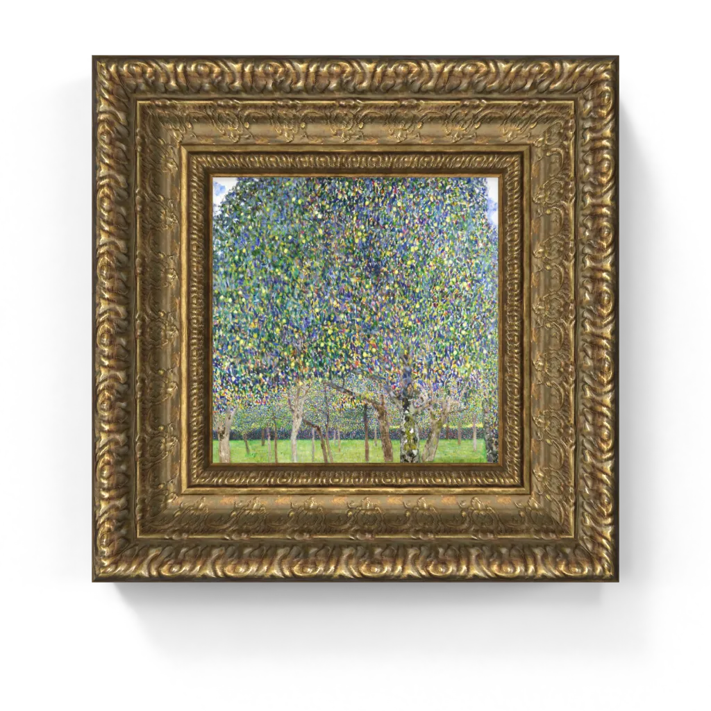 Our museum-quality framed canvas reproduction preserves the luminous color and tactile richness of Klimt’s original. Ideal for collectors drawn to nature-infused art, decorative landscapes, or the painterly transition between realism and pattern, Pear Tree brings serenity, vibrancy, and organic elegance into any setting.