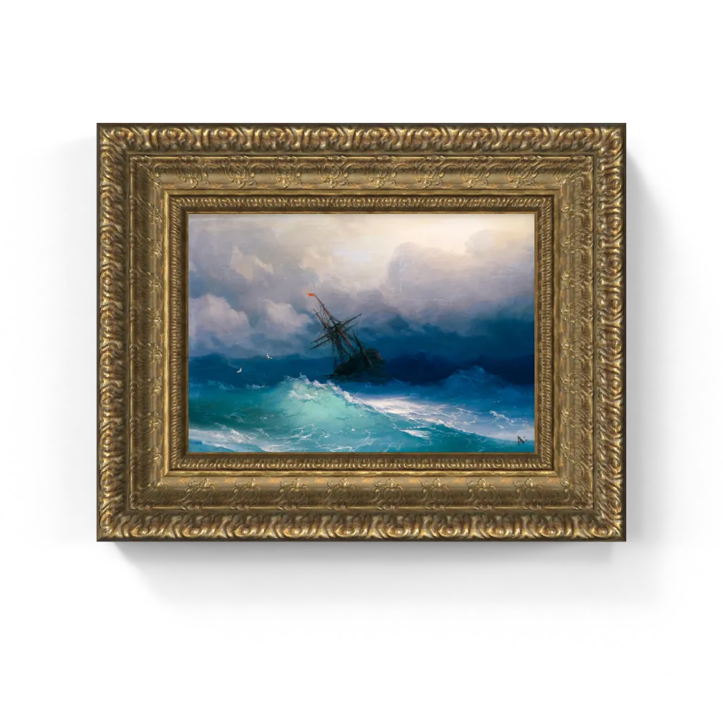 This powerful framed canvas reproduction of Ivan Aivazovsky’s Ship in Stormy Seas has undergone meticulous digital restoration, unlocking an astonishing intensity and visual depth often muted in typical online versions. The process has yielded unparalleled vibrancy in the tumultuous turquoise and deep blue waves, capturing their frothing power and dynamic movement with breathtaking realism. Furthermore, the restoration delivers more nuanced lighting in the dramatic, cloud-laden sky and sharper definition to the distressed ship, allowing every element of this Romantic masterpiece to resonate with profound clarity and raw emotional impact.