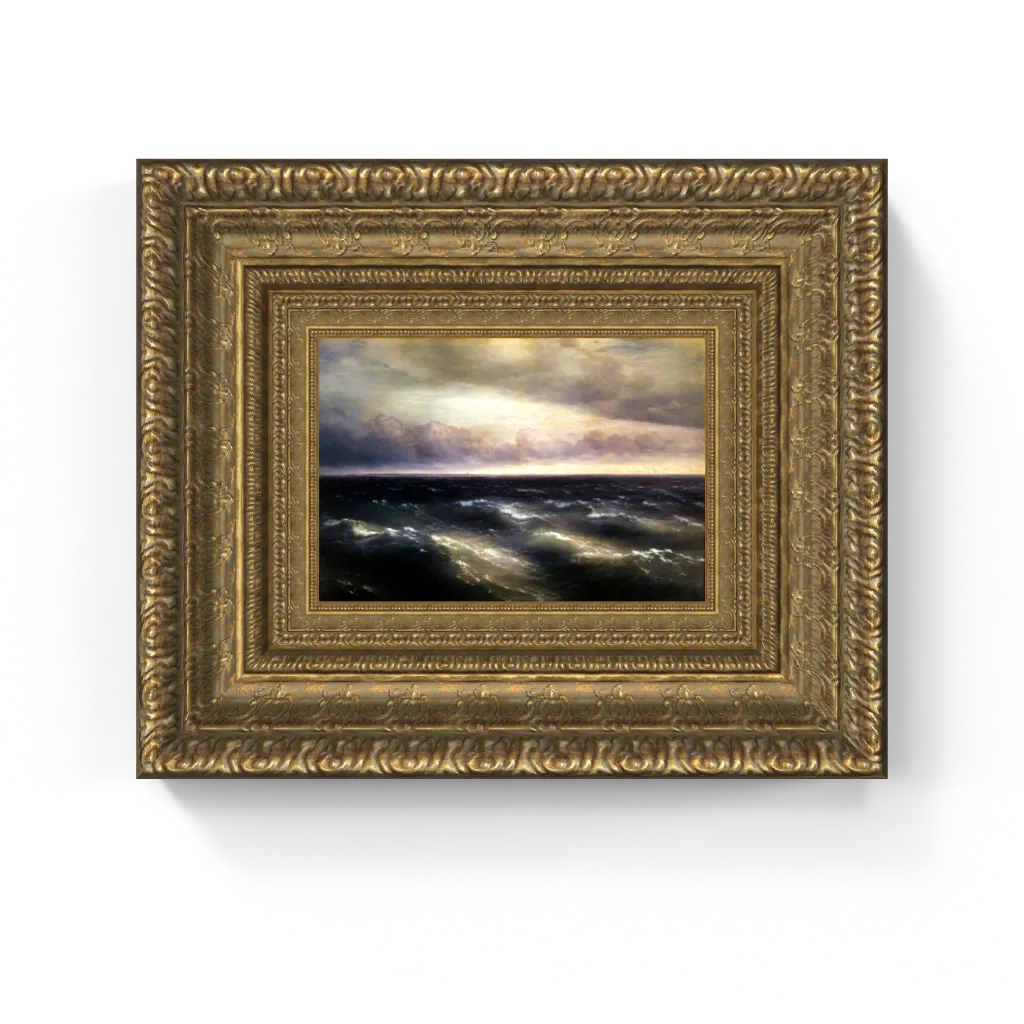 This profound framed canvas reproduction of Ivan Aivazovsky’s The Black Sea has undergone meticulous digital restoration, unveiling a breathtaking depth and atmospheric intensity often muted in typical online versions. The process has yielded unparalleled richness in the dark, turbulent blues and greens of the expansive sea, conveying its vastness and immense power with remarkable fidelity. Furthermore, the restoration delivers more dynamic and nuanced illumination in the stormy sky, with the dramatic light breaking through the heavy clouds appearing more luminous and vibrant, enhancing the painting's sublime mood with exceptional clarity.