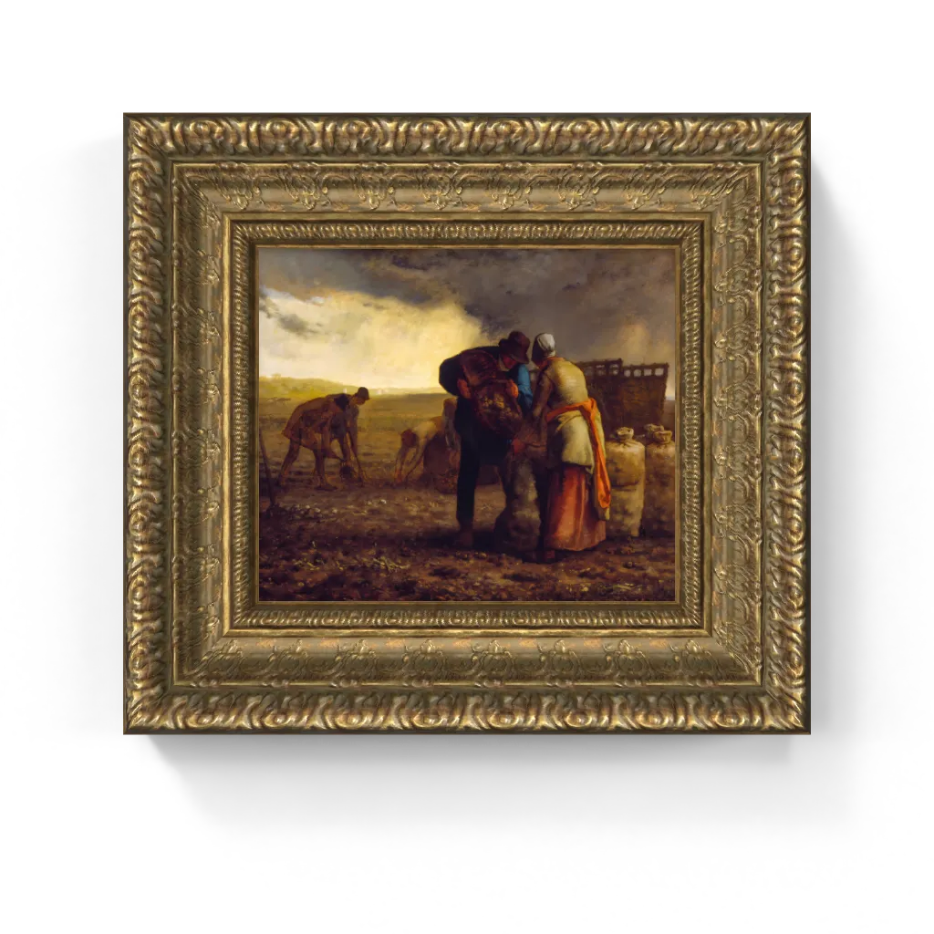 This museum-quality framed canvas reproduction faithfully preserves the original's textured detail and emotional depth, ensuring a compelling and authentic presence in your home. Ready to hang, it's an ideal piece for farmhouse decor, traditional spaces, or any interior seeking to celebrate human endurance, the bounties of the earth, and the profound dignity of labor. Bring the timeless essence of French rural life and a powerful narrative of human connection into your space with this celebrated piece of 19th-century French art.