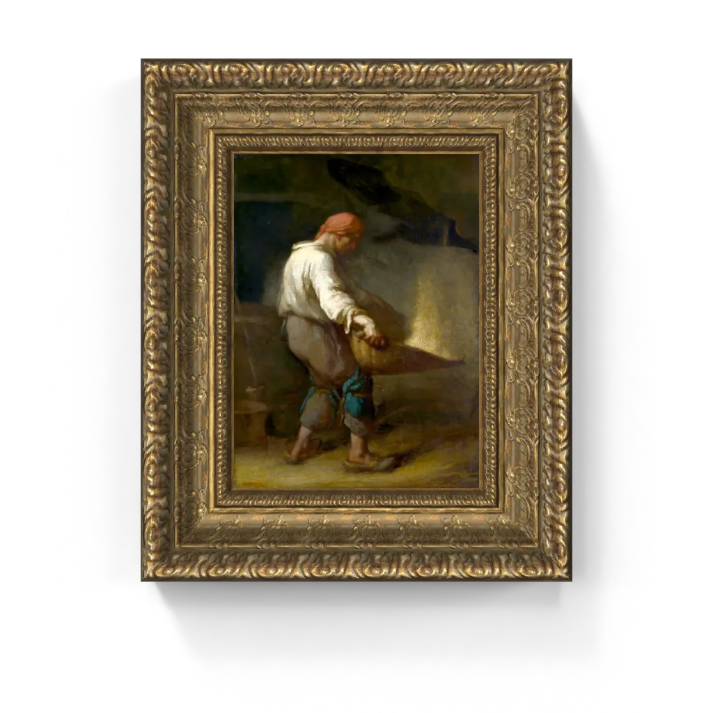 Journey back to 19th-century French countryside with this iconic Jean-François Millet canvas print. "The Winnower" captures a solitary figure, a peasant farmer, in a moment of intense focus, surrounded by the earthy tones and filtered light of a rustic barn. Every detail—from his sturdy posture to the swirling dust and grain—underscores the timeless ritual of harvest and farm labor. Millet, a pivotal figure in the Realism art movement and the Barbizon School, masterfully elevates this everyday rural scene into a universal symbol of human resilience and the profound beauty found in honest work. It's not just a painting; it's a testament to the strength and humility of those who tlatex the land.