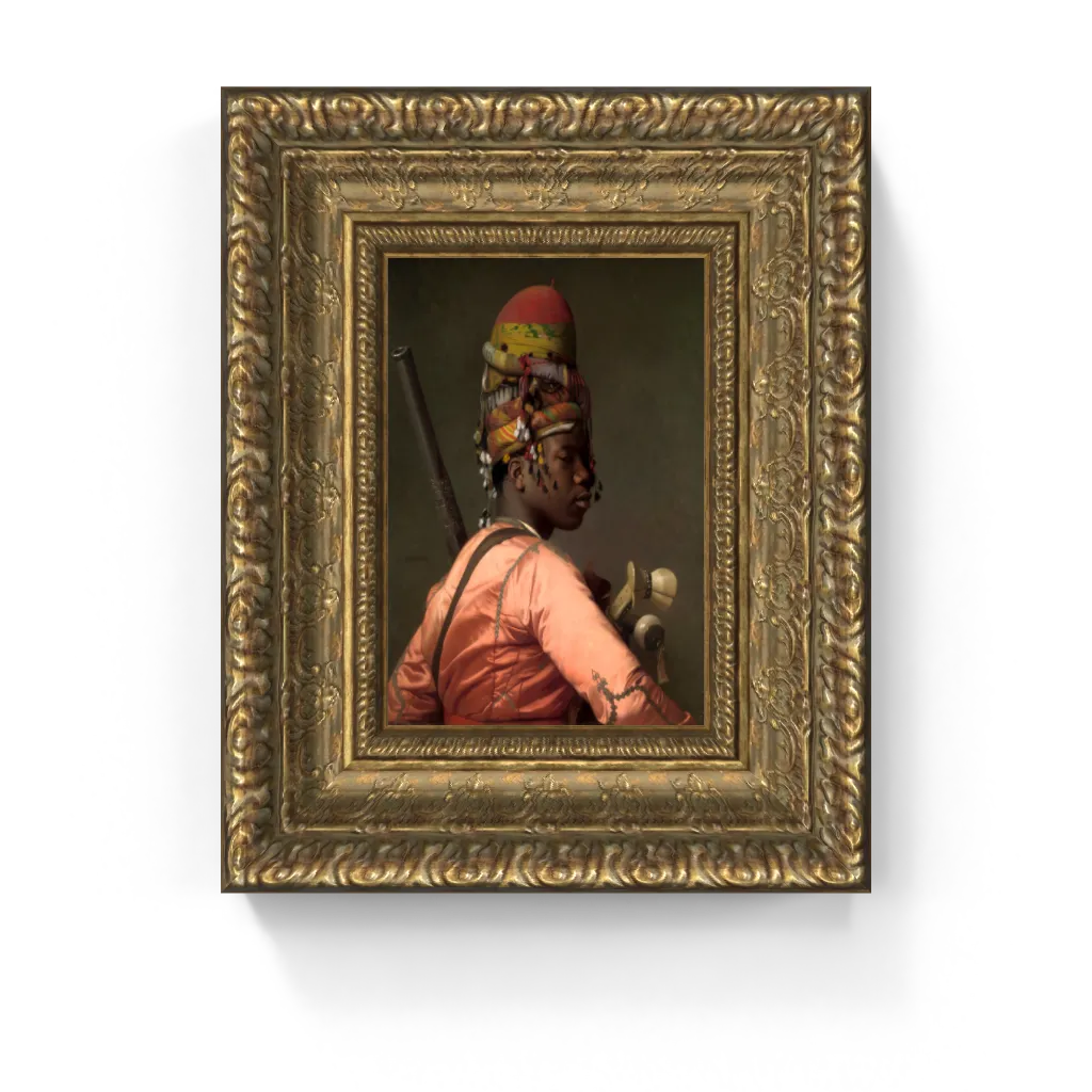 This museum-quality framed canvas reproduction captures the luminous detail, dramatic presence, and historical intrigue of the original. Ideal for collectors of Orientalist art, 19th-century academic painting, or regal, character-rich portraiture, Bashi-Bazouk is a statement piece that radiates power, dignity, and painterly brilliance.