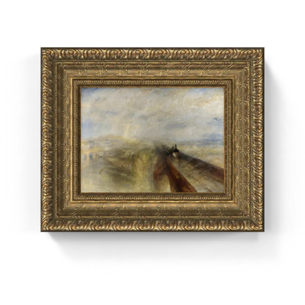 This museum-quality framed canvas reproduction preserves the glowing light, atmospheric complexity, and emotional power of Turner’s original. Ideal for collectors of Romantic art, industrial-age imagery, or dynamic landscapes, Rain, Steam and Speed brings energy, depth, and historical resonance into any refined space.