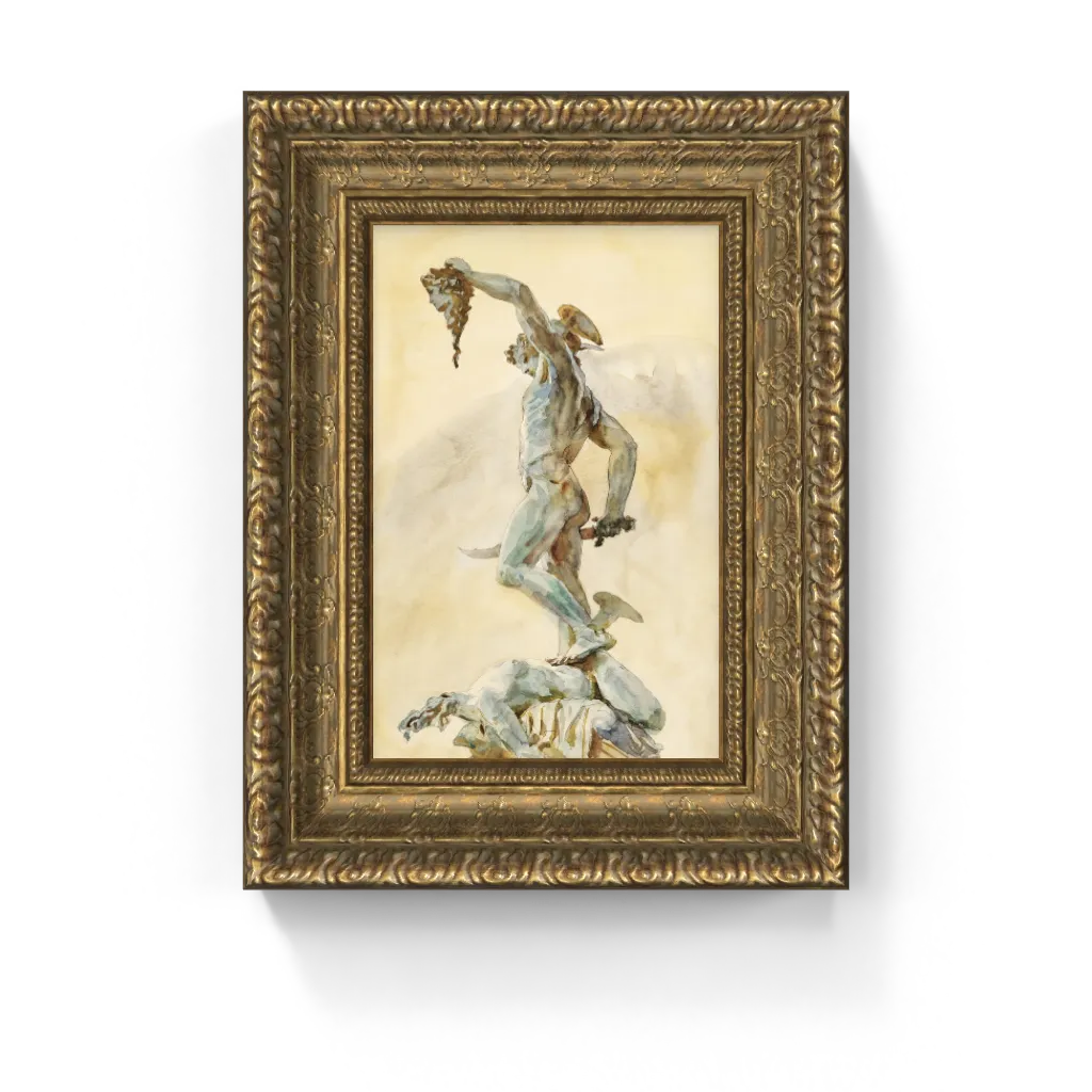 Experience the timeless dialogue between sculpture and sketch in Sketch of Cellini’s Perseus, a masterful watercolor and graphite study by John Singer Sargent. Created around 1909–1910 during his visits to Florence’s Loggia dei Lanzi, Sargent translates Benvenuto Cellini’s famous Renaissance bronze into a lively, expressive image on paper.