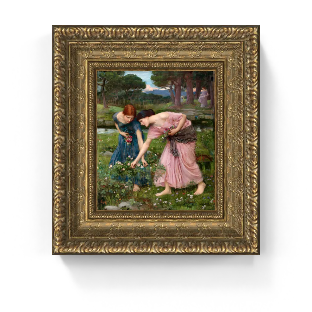This refined framed canvas reproduction captures every petal, fold, and glimmer of the original. A poetic addition to interiors that appreciate elegance, femininity, and classical themes, Gather Ye Rosebuds evokes the sweetness of memory and the urgency of now.