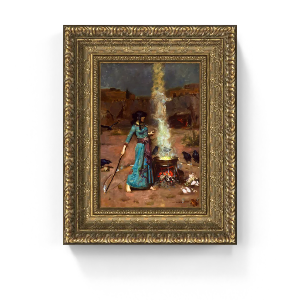 This emotionally profound framed canvas reproduction of John William Waterhouse’s The Magic Circle has undergone meticulous digital restoration, unlocking an astonishing clarity and vibrant fidelity that is truly unparalleled. As a version sourced from a private collection, this reproduction reveals a pristine state often unseen in public copies. The process has revived the luminous glow of the cauldron’s fire and the exquisite richness of the sorceress’s blue robes with precision, ensuring every delicate nuance of light and shadow is perfectly rendered. This meticulous attention ensures this masterpiece comes to life on canvas with breathtaking authenticity, offering a truly stunning physical experience that preserves the painting's original, compelling splendor and mystical vision.