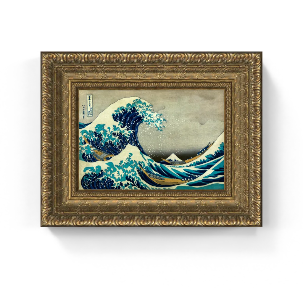This iconic framed canvas reproduction of Katsushika Hokusai’s The Great Wave off Kanagawa has undergone meticulous digital restoration, unlocking an astonishing clarity and vibrant fidelity that is truly unparalleled. The process has revived the deep, rich saturation of the legendary "Prussian blue" and the crisp precision of Hokusai's dynamic linework, particularly in the frothing foam and powerful curves of the wave. This meticulous attention ensures this masterpiece comes to life on canvas with breathtaking authenticity, offering a truly stunning physical experience that preserves the print's original, monumental drama and striking visual impact.
