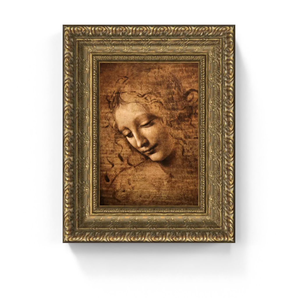 This iconic framed canvas reproduction of Leonardo da Vinci’s La Scapigliata has undergone meticulous digital restoration, unlocking an astonishing clarity and vibrant fidelity that is truly unparalleled. The process has revived the luminous glow of her skin and the exquisite detail of the delicate, swirling lines of her hair with incredible precision, ensuring every subtle nuance of Leonardo's masterful technique is perfectly rendered. This meticulous attention ensures this masterpiece comes to life on canvas with breathtaking authenticity, offering a truly stunning physical experience that preserves the painting's original, ethereal beauty and profound mystery.
