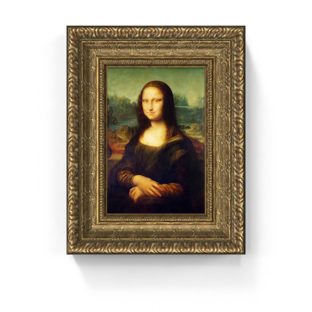 This iconic framed canvas reproduction of Leonardo da Vinci’s Mona Lisa has undergone extensive digital restoration, achieving an astonishing clarity and vibrant fidelity that is truly unparalleled. Where centuries of age and prior interventions often leave her veiled, this meticulous process has brilliantly revived the subtle luminosity of her skin, the exquisite nuances of her enigmatic smile, and the breathtaking details of the fantastical landscape, all while preserving Leonardo's masterful sfumato. This ensures this masterpiece comes to life on canvas with breathtaking authenticity, offering a truly stunning physical experience that restores her profound original impact and reveals her as if freshly painted.