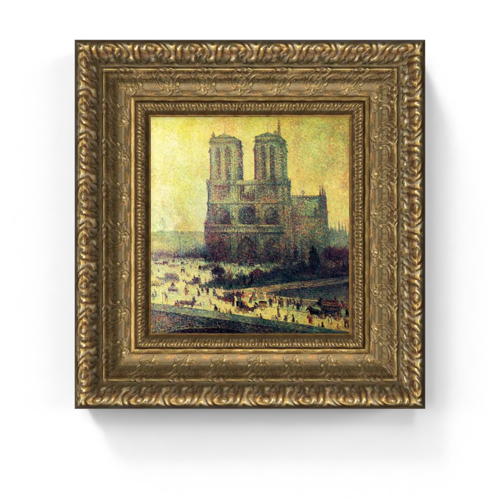 This iconic framed canvas reproduction of Maximilien Luce’s Notre-Dame has undergone meticulous digital restoration, unlocking an astonishing clarity and vibrant fidelity that is truly unparalleled. The process has revived the luminous glow of the Parisian atmosphere and the exquisite detail of every individual Pointillist dot with precision, ensuring the painting's intended visual vibration and monumental presence are perfectly realized. This meticulous attention ensures this masterpiece comes to life on canvas with breathtaking authenticity, offering a truly stunning physical experience that preserves the print's original, compelling vision and intricate texture.