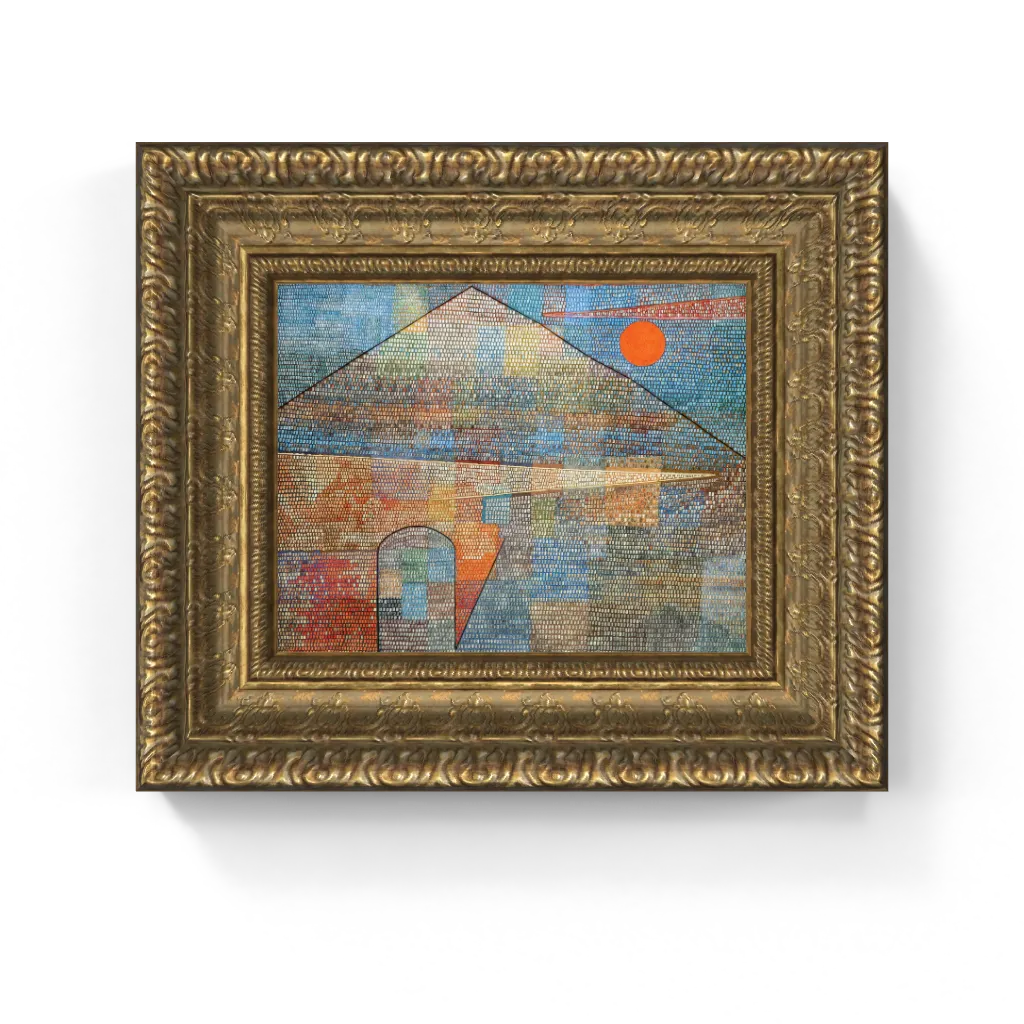 This premium framed canvas reproduction powerfully conveys the luminous atmosphere and profound artistry of Klee's original, now with an enhanced clarity that brings every intricate detail and symbolic element to life. It is an exceptional statement piece for any sophisticated living space, a focal point that offers both visual splendor and a captivating journey into a world of abstract beauty and intellectual depth, perfectly suiting modern, unique, or minimalist decor styles.