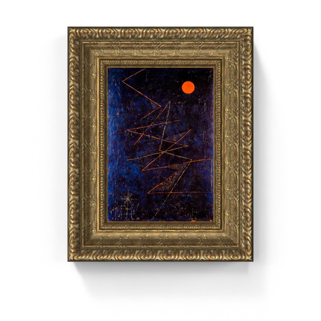 This premium framed canvas reproduction powerfully conveys the luminous atmosphere and profound artistry of Klee's original, now with an enhanced clarity that brings every intricate detail and symbolic element to life. It is an exceptional statement piece for any sophisticated living space, a focal point that offers both visual splendor and a captivating journey into a world of abstract beauty and intellectual depth, perfectly suiting modern, unique, or bohemian decor styles.