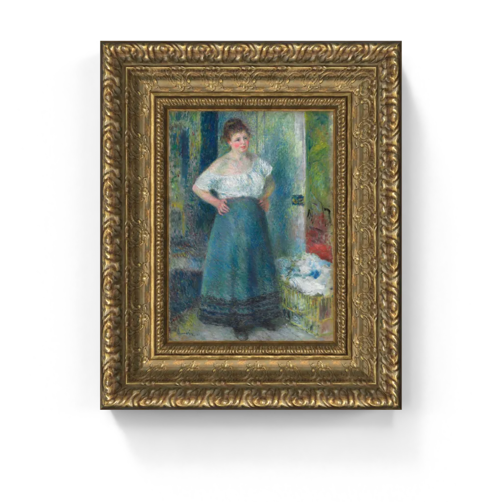 This museum-quality framed canvas reproduction offers collectors a chance to appreciate the contemplative side of Renoir—a contrast to his well-known fêtes and garden scenes. The Laundress speaks quietly, but powerfully, to themes of labor, femininity, and authenticity.