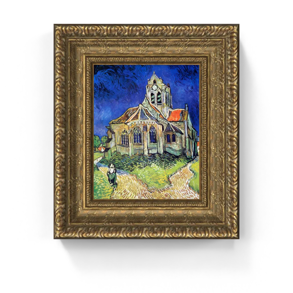 Witness architecture transformed into emotion in The Church at Auvers, Vincent van Gogh’s haunting and iconic 1890 painting completed during the final months of his life. Set in the quiet village of Auvers-sur-Oise, where Van Gogh spent his last days, the church looms large in a deep cobalt sky, its angular shadows and twisting form rendered with the expressive brushwork and vivid palette that define Van Gogh’s mature style.