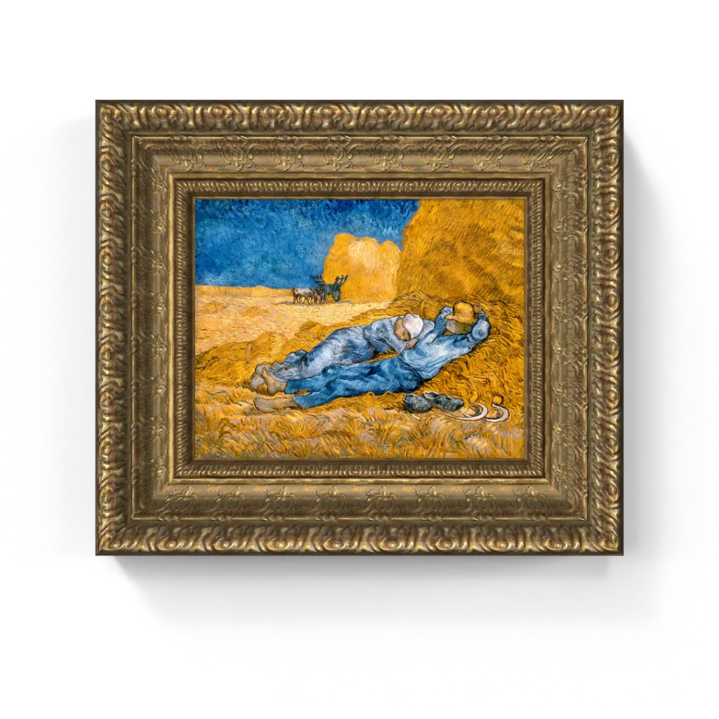 Rest in the warmth of southern sun and the rhythms of rural life with The Siesta (La Méridienne), Vincent van Gogh’s evocative 1890 homage to labor, rest, and the human bond with nature. Inspired by a drawing from Jean-François Millet, Van Gogh reimagines the midday break of two exhausted farmworkers in a golden wheat field—rendered in his unmistakable, emotionally charged style.